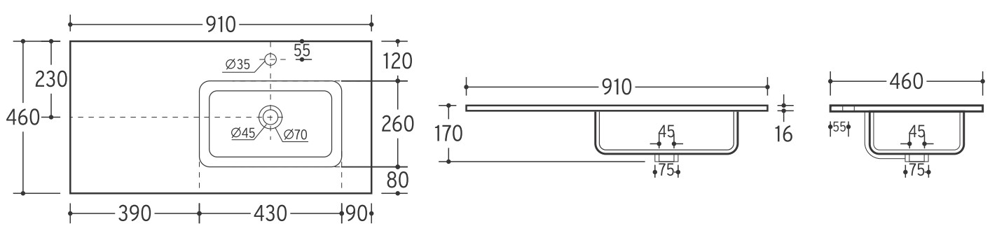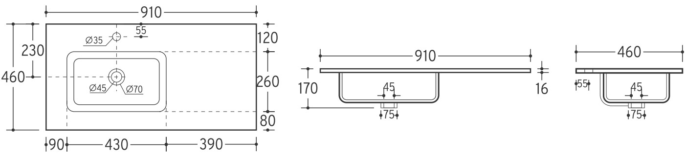 Cerámico Perfect 91x46cm desplazado izquierda (60+30)