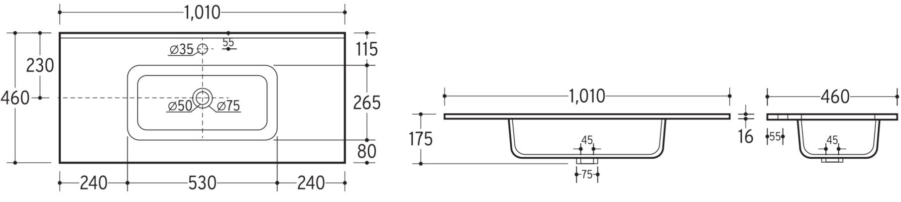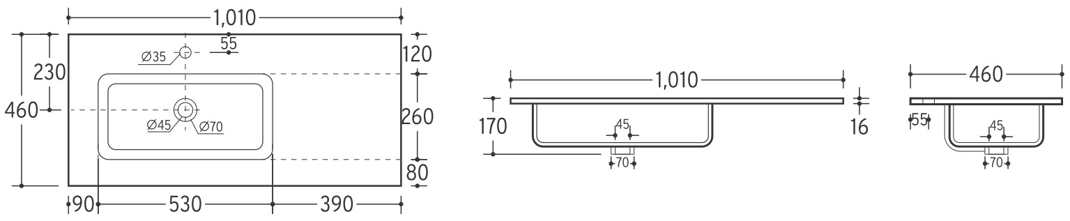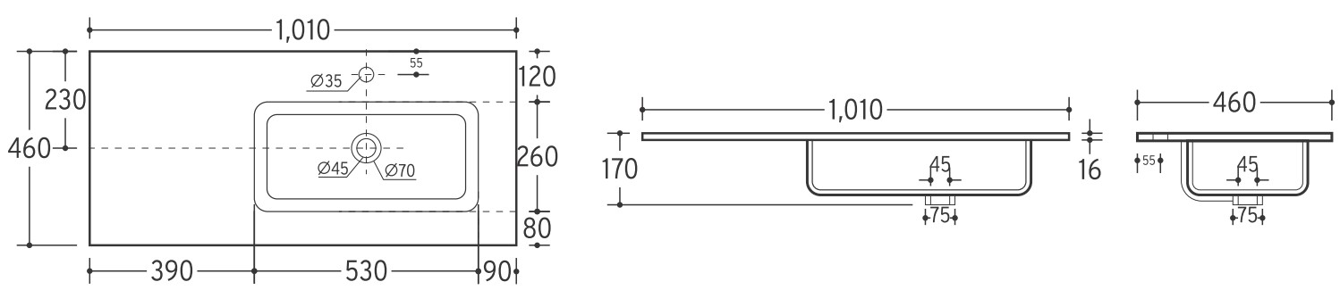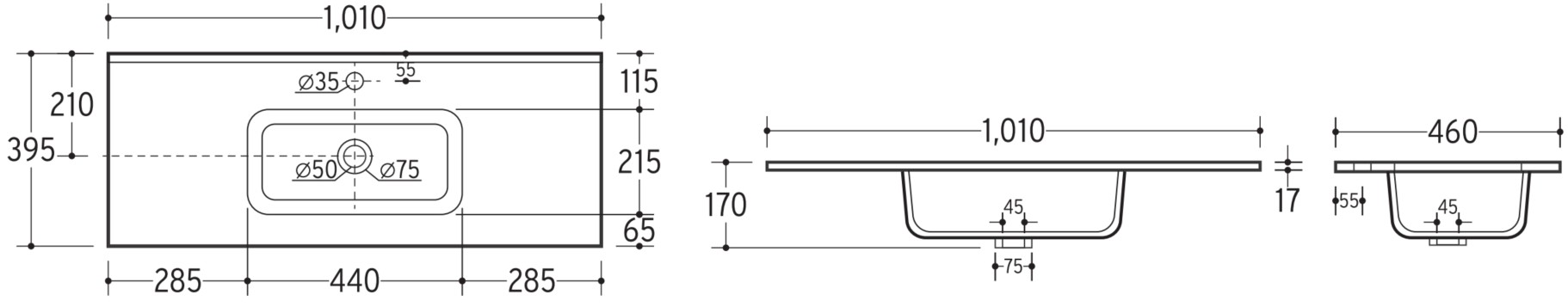 Cerámico Perfect 101x46cm desplazado derecha (30+70)