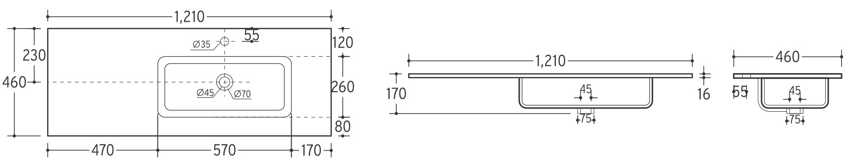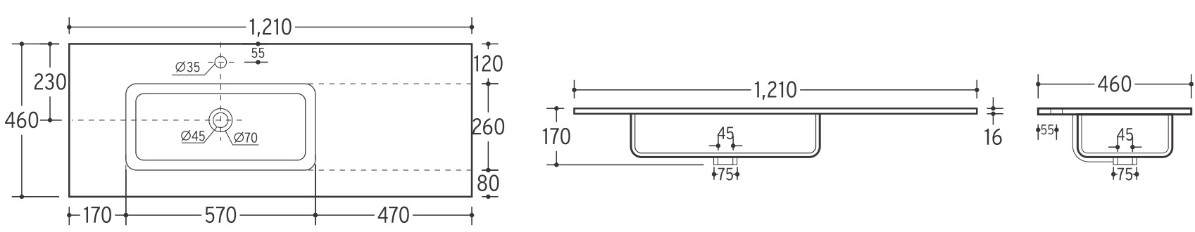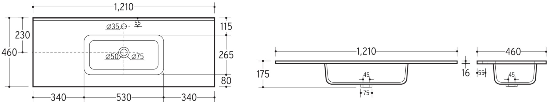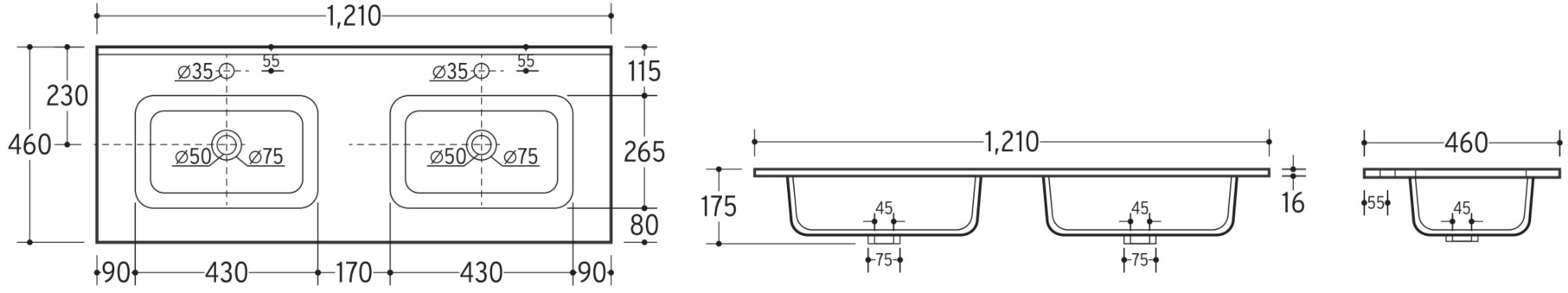 Cerámico Perfect 121x46cm desplazado izquierda (90+30)