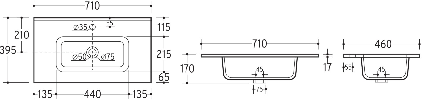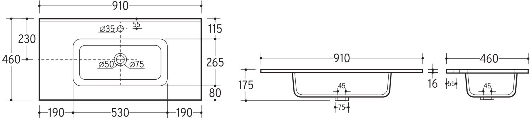 Cerámico Perfect 91x46cm desplazado izquierda (60+30)